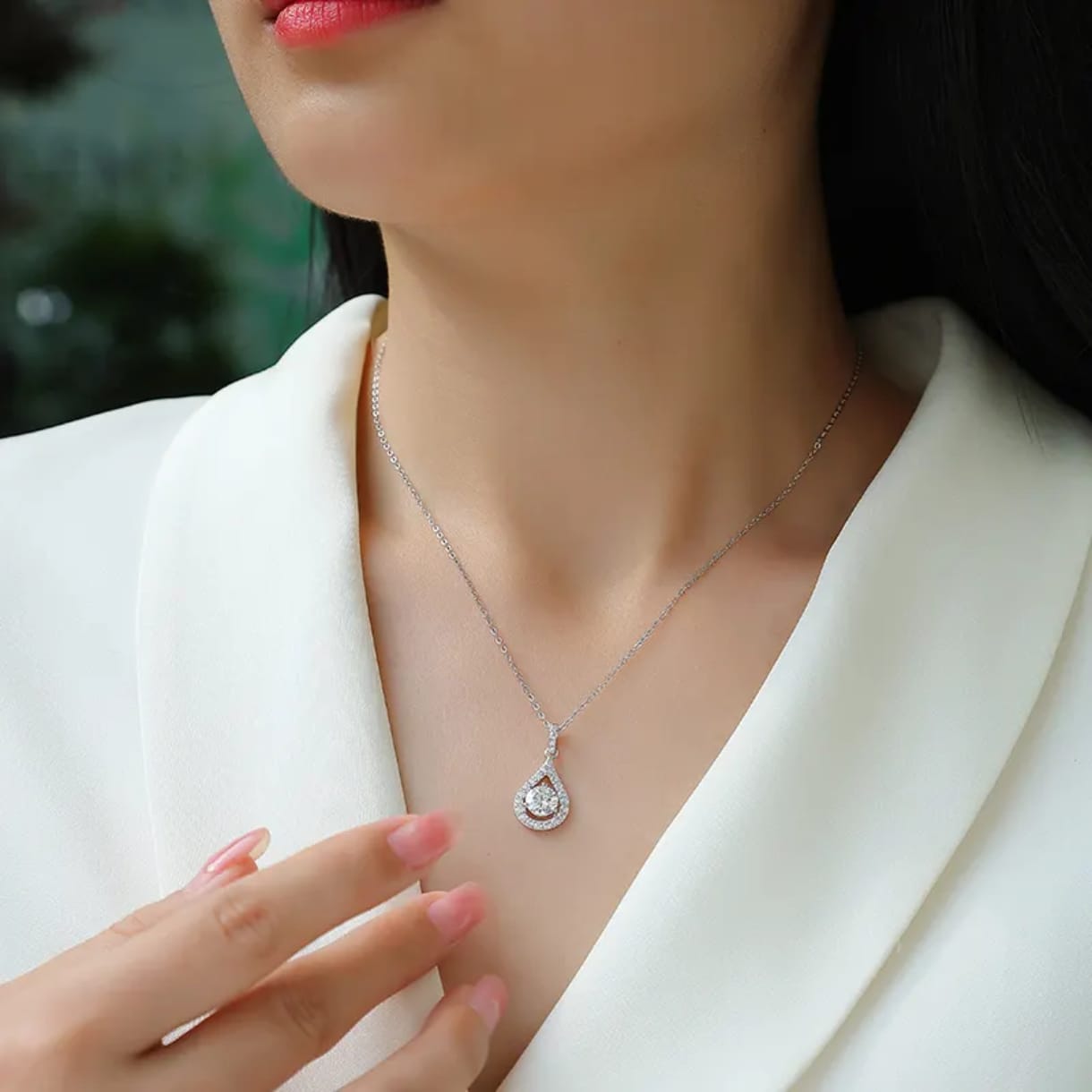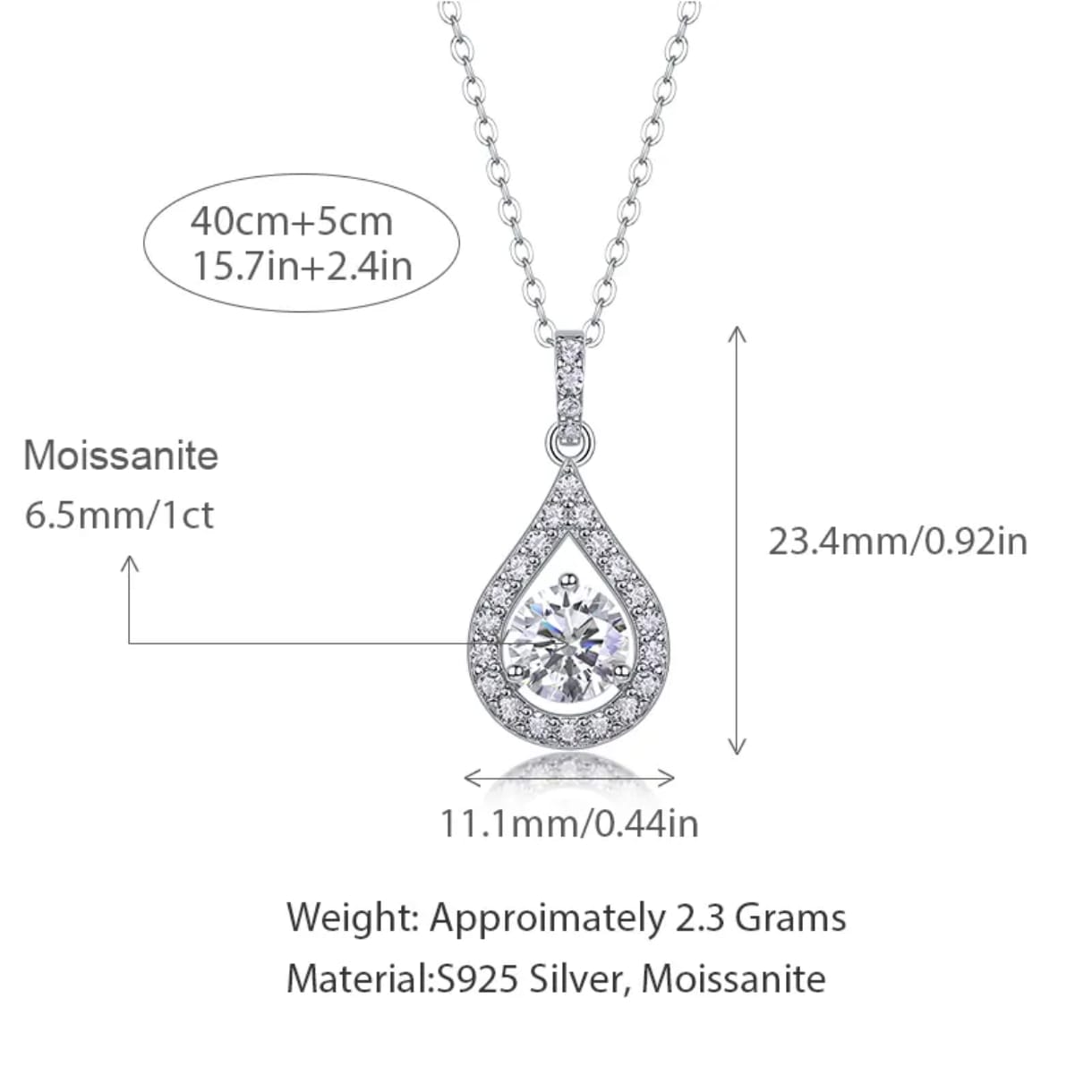 Be the first to review “1 Carat Moissanite Teardrop Pendant Necklace in 925 Sterling Silver”
